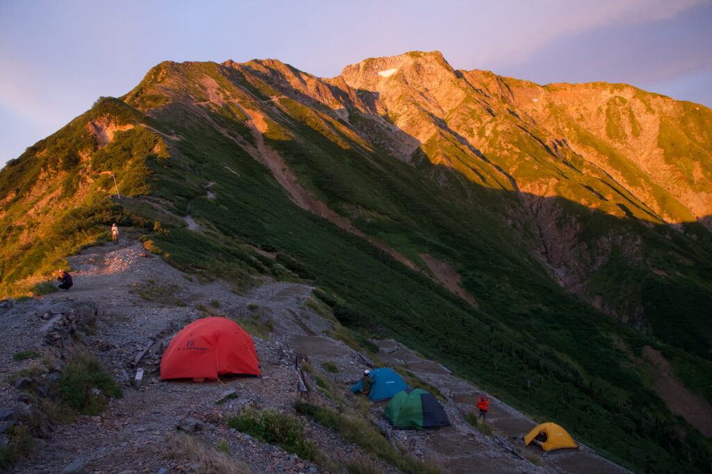 朝日に照らされて五竜岳も綺麗に見えています