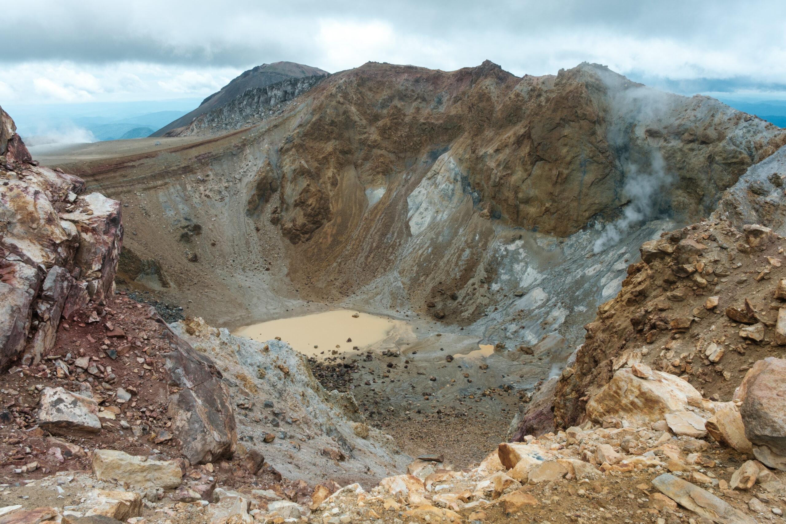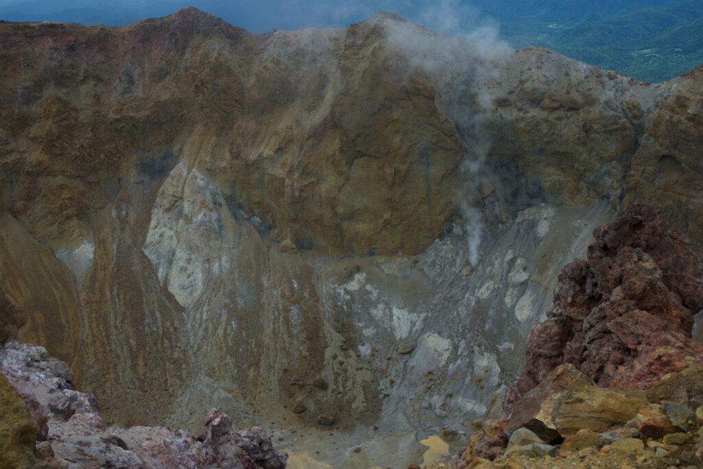 火口付近まで来ました深くて大きいんですサイズ感がわからずグラグラするような感じです伝わるかな〜煙は少ないですね